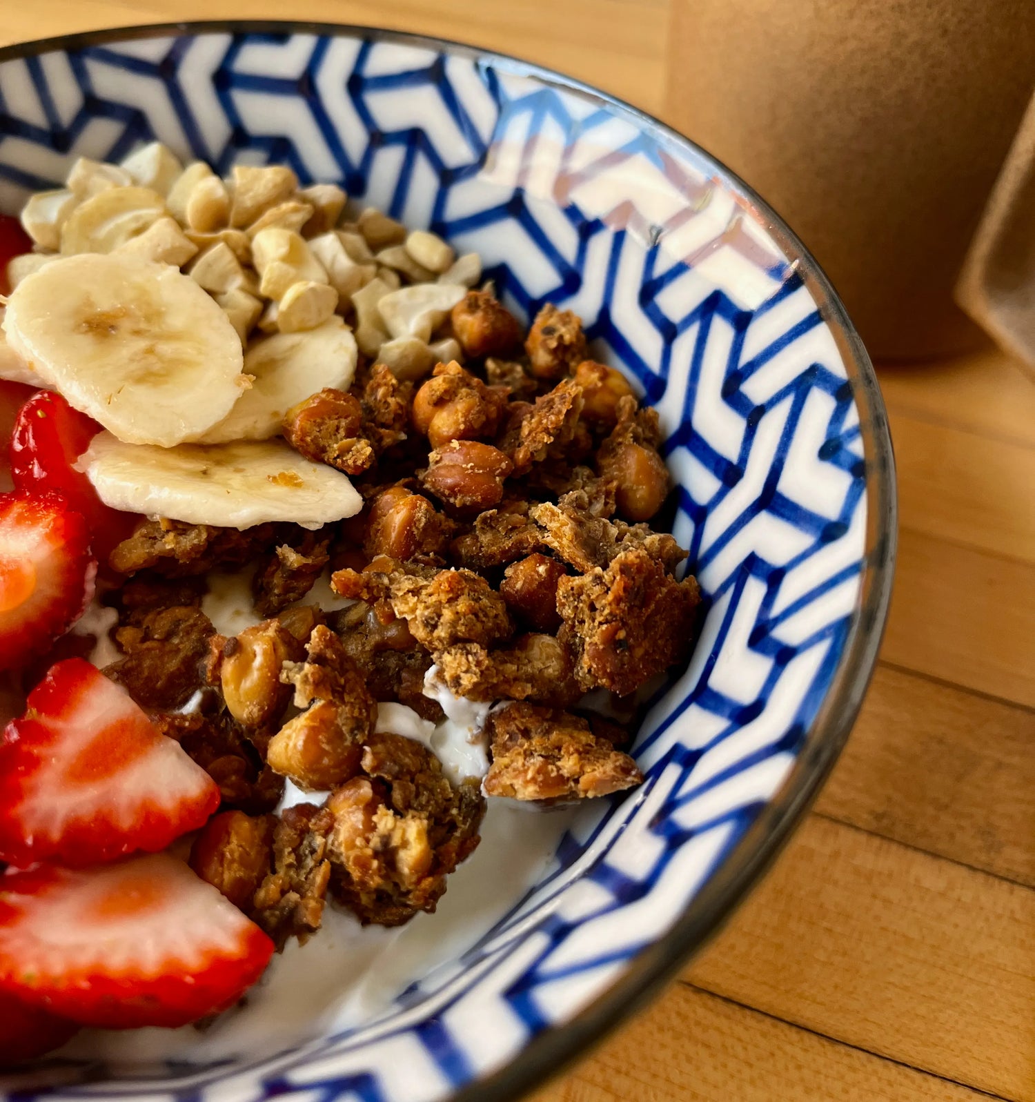 Chickpea granola. More fiber, more protein, less sugar. Made from beans, not oats.
